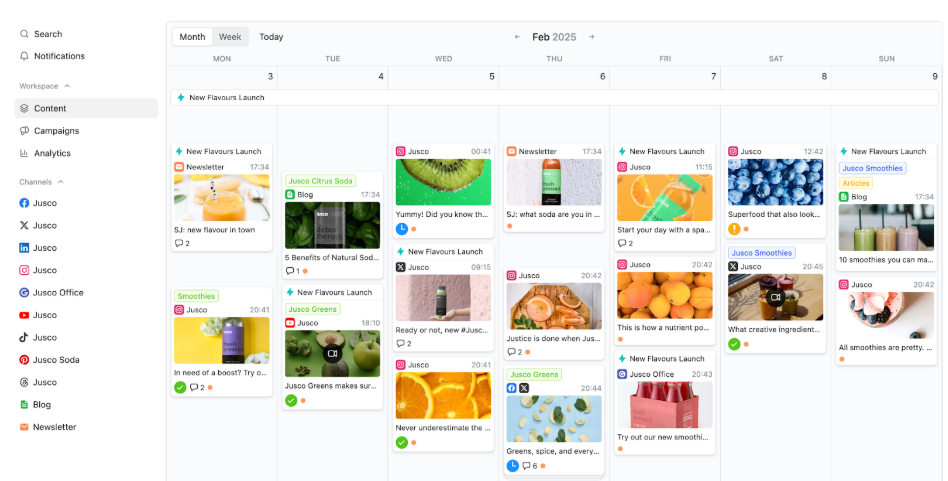 - Visual content views: Use Calendar, Grid, Feed, or List mode to see the big picture or zoom in.